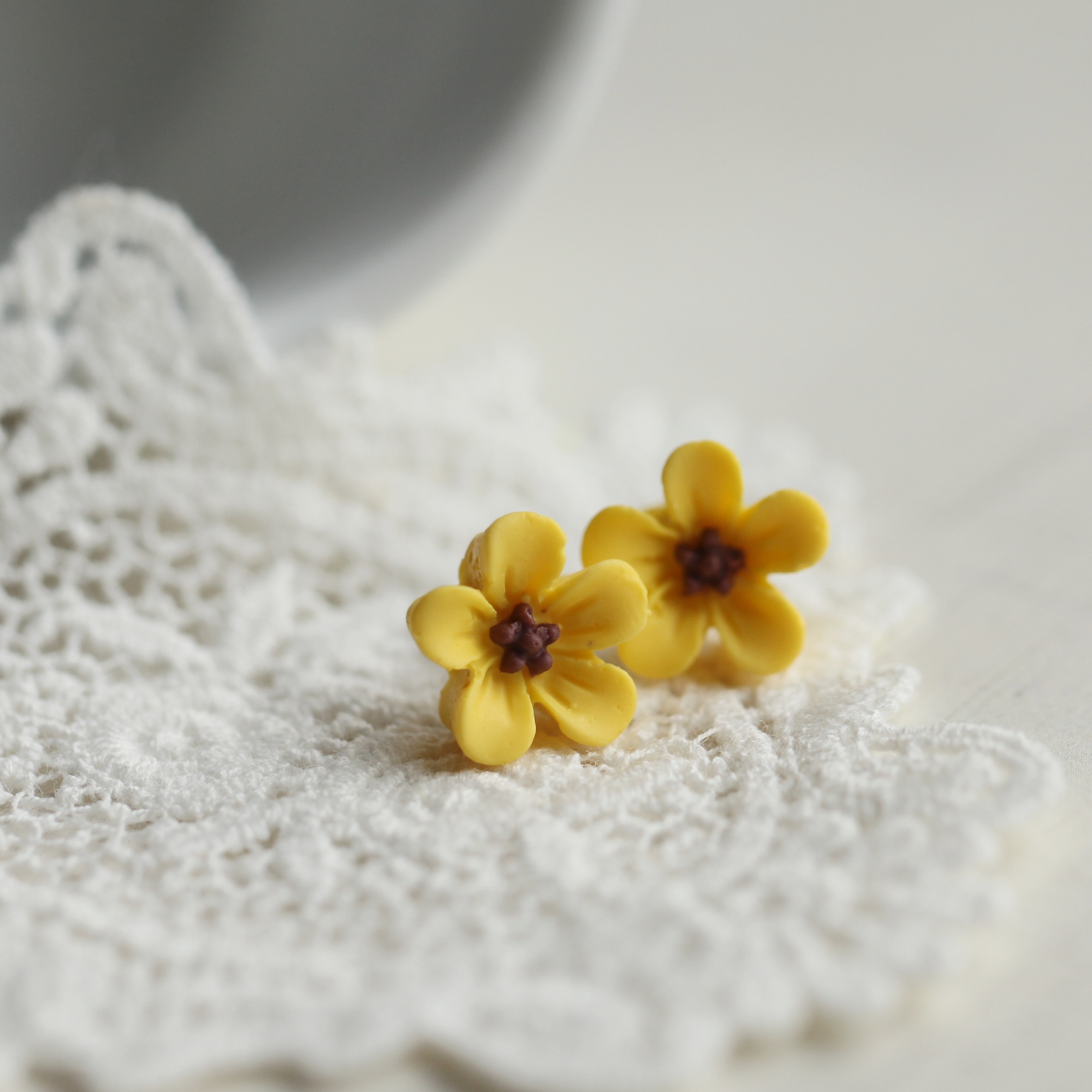 lucy. little wild flower stud earrings in romantic yellow colour