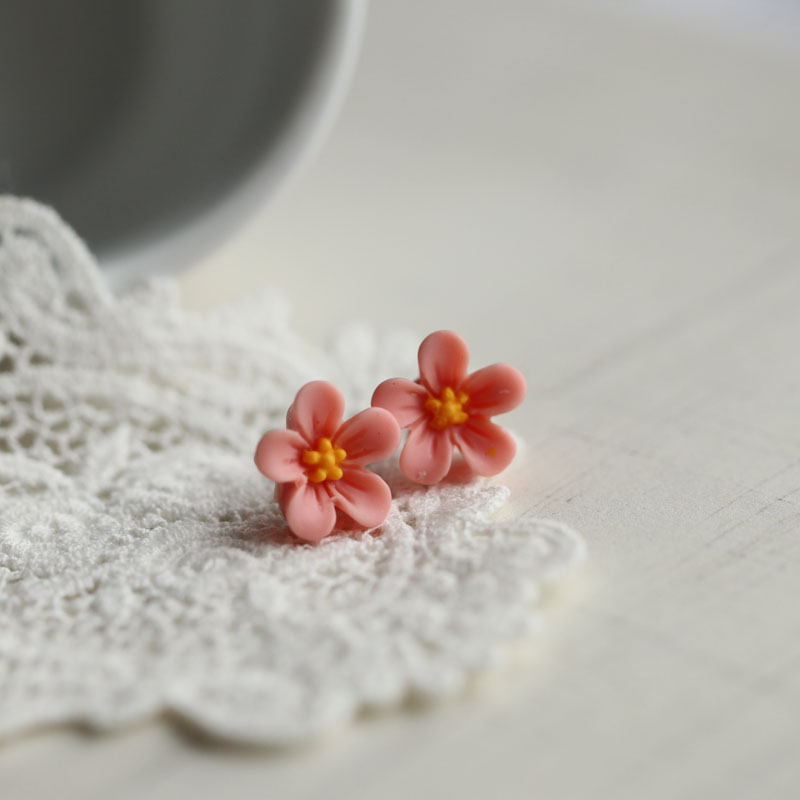 Home - lucy. little wild flower stud earrings in romantic coral colour