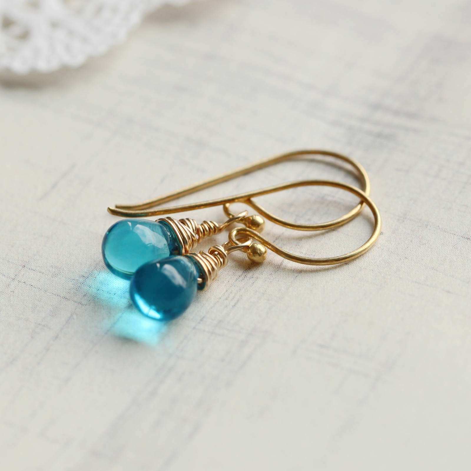 tiny blue tear drop earrings