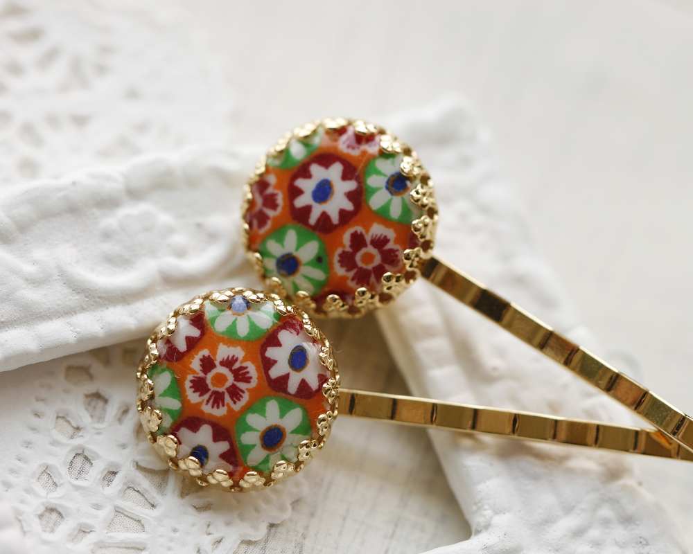 Home - lucia. - vintage floral glass hair pin SET - 01 -