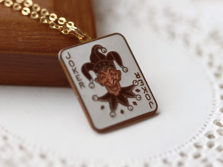 this necklace is made with a vintage playcard joker charm. simple and everyday wear style