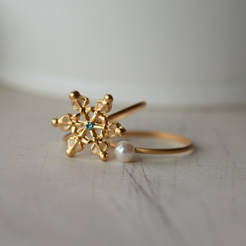 :: set of 2 pieces, snow flake and pearl rings :: come with gift box